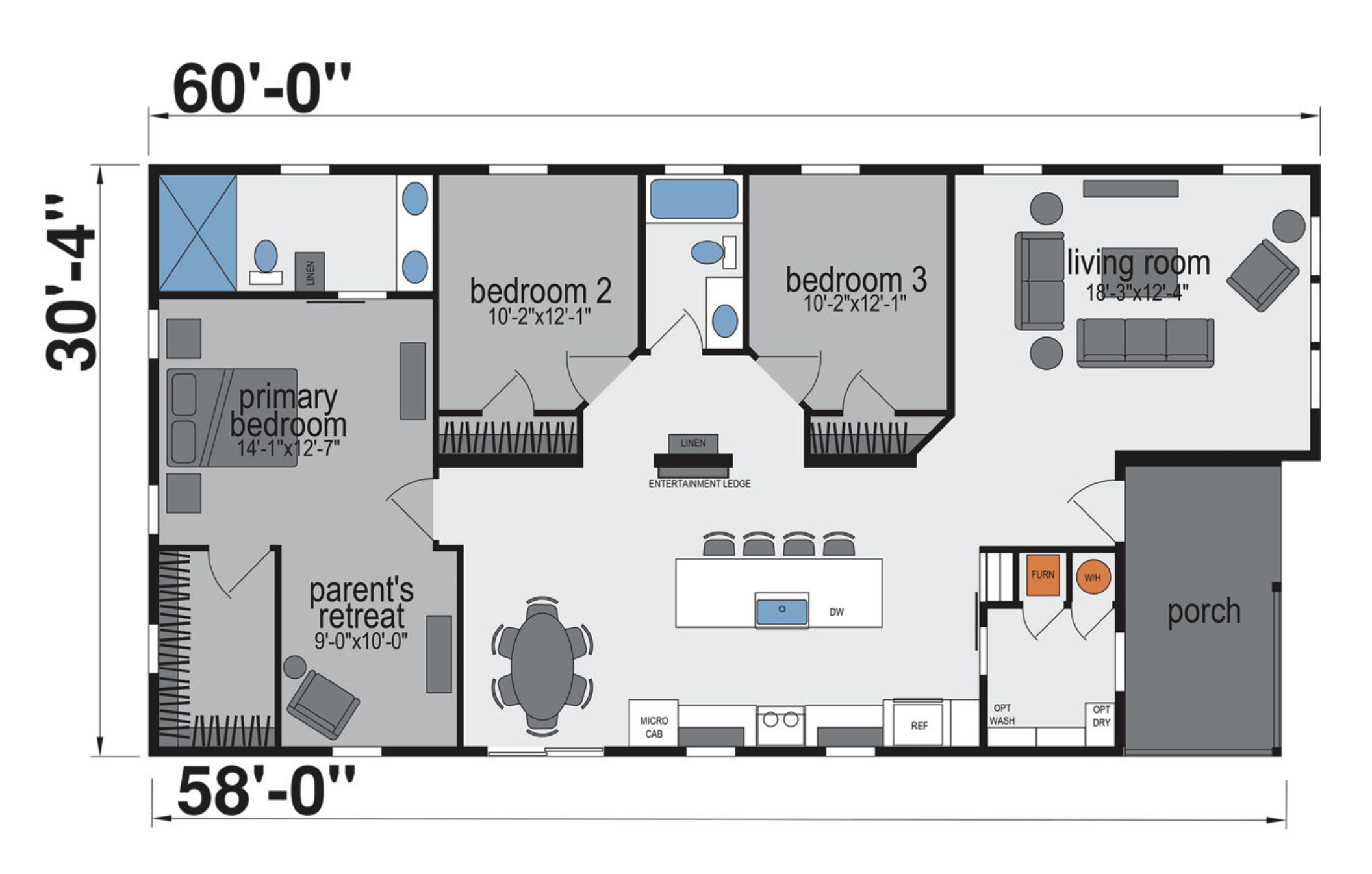 The Genesis is a 3 bedroom, 2 bathroom home with around 1,800 sq. ft. and an open layout connecting the kitchen, dining, and living areas. The kitchen features a large island with seating, while the spacious living room offers a comfortable place to relax. The private primary suite includes its own bath and a bonus parent’s retreat for added flexibility. Orderable at our Kearney, NE location! Call 308-237-3843 for more information!